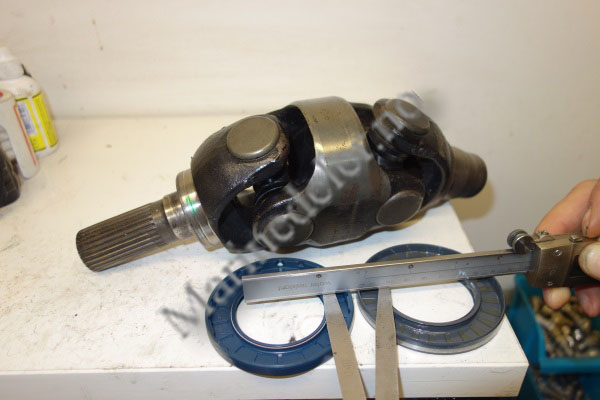 Bildet viser et universalledd for DPH drev. Til høyre er en original tetning fra Volvo Penta. Om den brukes vil tetteleppen treffe nøyaktig i slitesporet (markert med grønt). Da vil fortsatt lekkasje være sannsynlig. (olje ut i belgen) Om tetningsringen til høyre velges vil tetteleppen bli sideforskjøvet ca 1 mm og den vil da slite på en helt urørt flate slik det var da drevet var nytt.